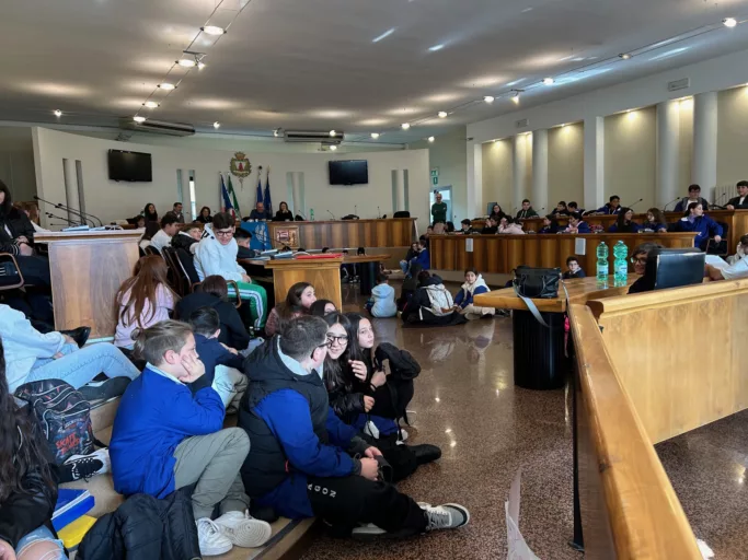 Piazza Umberto I gli allievi di 5 anni della scuola dell’Infanzia, gli allievi delle classi V scuola primaria e gli allievi delle classi III scuola secondaria di primo grado in corteo si sono recati in piazza Umberto I, dove i più piccoli hanno cantato e espresso il loro grido sui diritti dei bambini. I più grandi invece hanno avuto poi un incontro nell’aula Consiliare del Comune, ponendo domande ai presenti, precisamente il Sindaco dott. Antonio Trombetta, il vice sindaco geom. Pasquale Salzillo, l’Assessore all’Istruzione prof.ssa Francesca Cicchella, il Presidente del Consiglio Comunale avv. Antimo Zarrillo e in rappresentanza dell’UNICEF Elda Cicala. Il Dirigente Scolastico dott. Lorenzo de Simone e la vice preside prof.ssa Marcella Tarigetto, che ha fatto da moderatrice, e tutti i docenti presenti, hanno assistito al dibattito avuto dai nostri alunni con le istituzioni con grande orgoglio, per aver saputo affrontare un argomento per loro importante: I DIRITTI DEI BAMBINI E DEGLI ADOLESCENTI. Ad allietare la giornata in apertura e chiusura del dibattito l’orchestra del percorso musicale dell’I.C. “Aldo Moro” diretta dai maestri Francesco Saverio Di Lillo (clarinetto), Domenico Birnardo (tromba), Enrico Fagnoni (pianoforte), Luigi Ciriello (violino), i giovani musicisti hanno eseguito l’Inno alla gioia di Beethoven e “Aria sulla quarta corda” di Bach.
