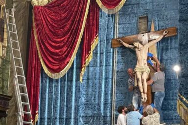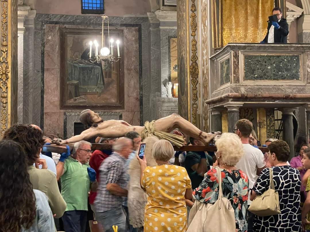 Ieri sera, tanti fedeli con profonda devozione e fede sono accorsi al Duomo per assistere al momento dell’esposizione del SS.Crocifisso. La prodigiosa statua lignea e’ stata deposta dalla Cappella delle 5 Piaghe ed esposta su un artistico trono dell’ altare maggiore.