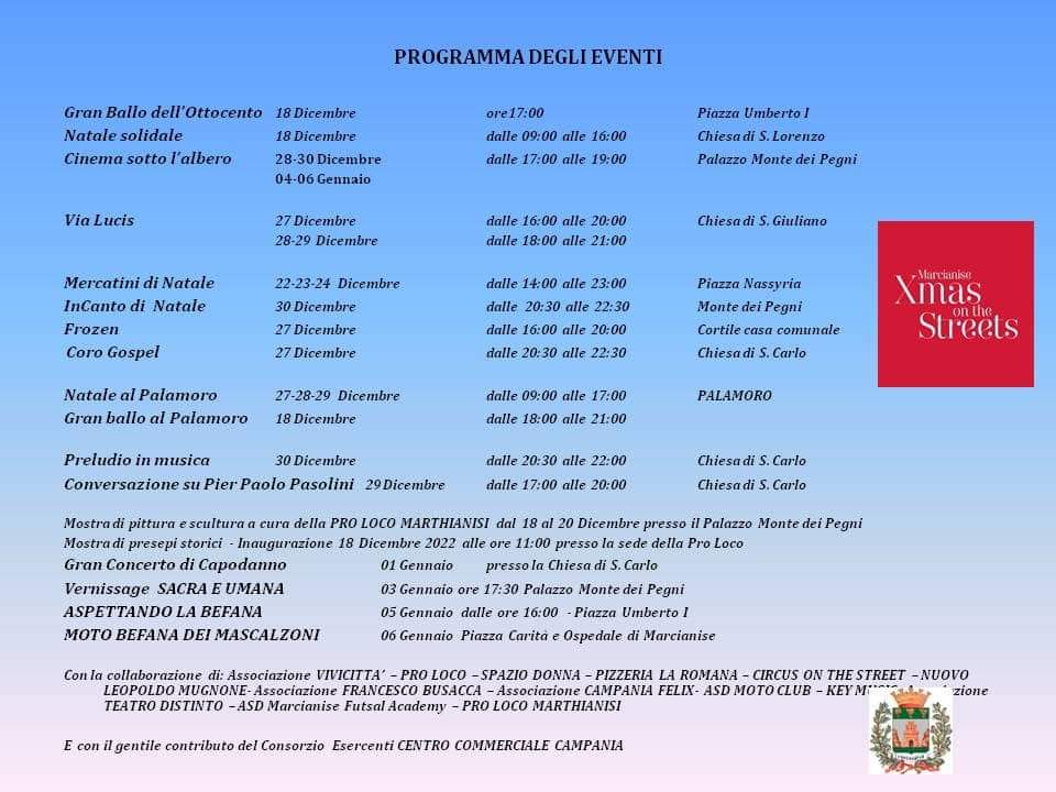 MARCIANISE: ECCO IL PROGRAMMA CON TUTTE LE DATE E GLI ORARI DEGLI EVENTI PER IL NATALE 17 Dicembre 2022 QUI DI SEGUITO IL CALENDARIO: