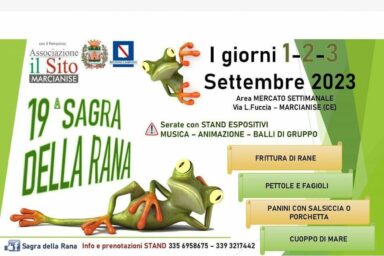 L’iniziativa , organizzata dall’Associazione “Il Sito” con il patrocinio del Comune di Marcianise, della regione Campania prenderà il via venerdi’ 1 settembre e terminerà domenica 3 settembre 2023 presso l’Area Fiera Settimanale in Via Luigi Fuccia. Durante la manifestazione sarà possibile assaporare frittura di rane , pettole e fagioli, cuoppo di mare e panini con salsiccia e friarielli.