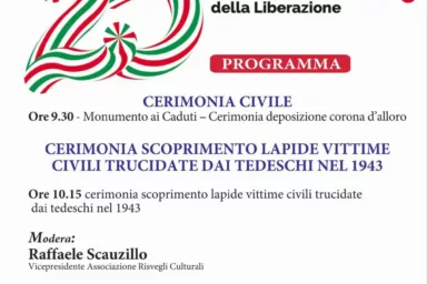 Domani, giovedì 25 aprile, in occasione della Festa della Liberazione, l’Amministrazione comunale guidata dal sindaco Antonio Trombetta ha promosso due iniziative per ricordare la liberazione d’Italia dalla dittatura fascista e dall’occupazione nazista del Paese.
