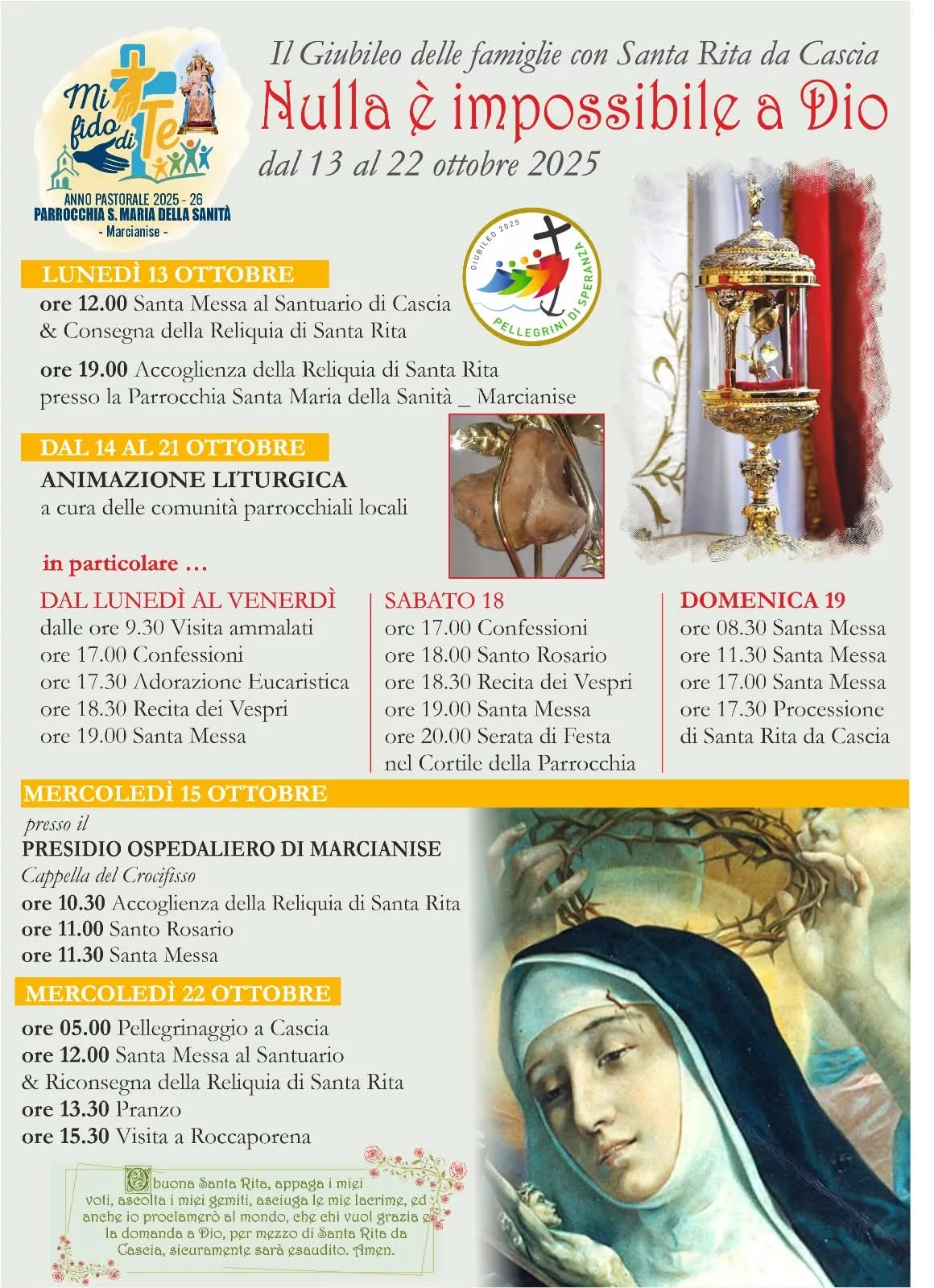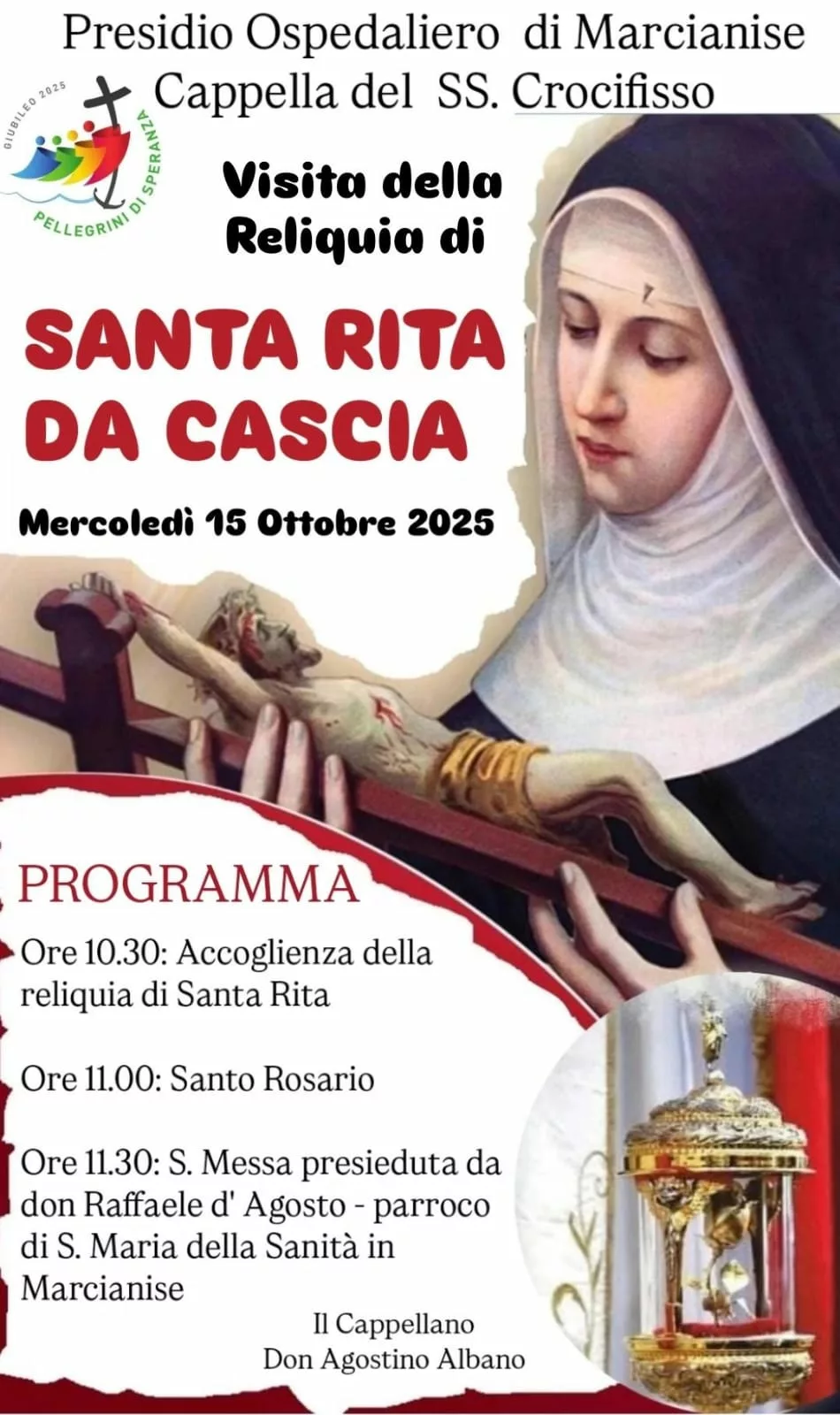 MARCIANISE: ECCO LE INIZIATIVE PER L’ ARRIVO DELLE RELIQUIE DI SANTA RITA DA CASCIA