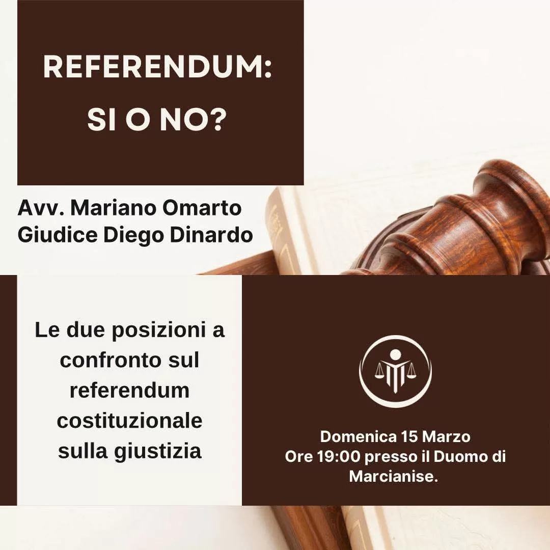 Domenica 15 marzo alle ore 19:00, presso il Duomo di Marcianise, si terrà un dibattito sulle due posizioni inerenti al referendum costituzionale sulla giustizia.