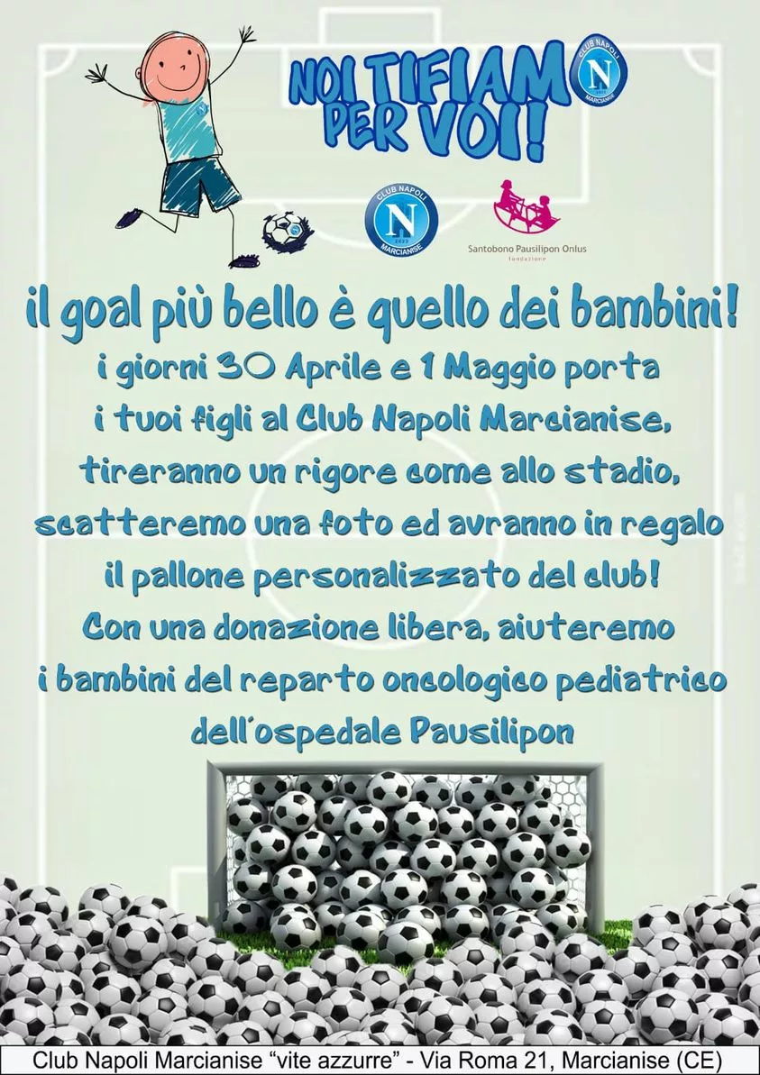 Ricordo a tutti che Domenica 30 Aprile, in Marcianise, presso l’Associazione Club Napoli Marcianise Vite Azzurre, Via Roma 21, si svolgerà l’evento “Noi tifiamo per voi”.