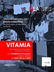 L’appuntamento con “Vitamia” tragicommedia di una mamma napoletana, con Domenica Pollasto, scritto e diretto da Rino Della Corte, una produzione OLA’ FABBRICA CREATIV, è per stasera (30 settembre) alle 20,30 a Spazio Corrosivo in Via Giulio Foglia. Tutti coloro che prenderanno parte gratuitamente a questo evento, che è la prima della prima, lettura pubblica di uno spettcolo in divenire, potranno gustare squisitezze tipiche. Una serata assoluatmente da non perdere!