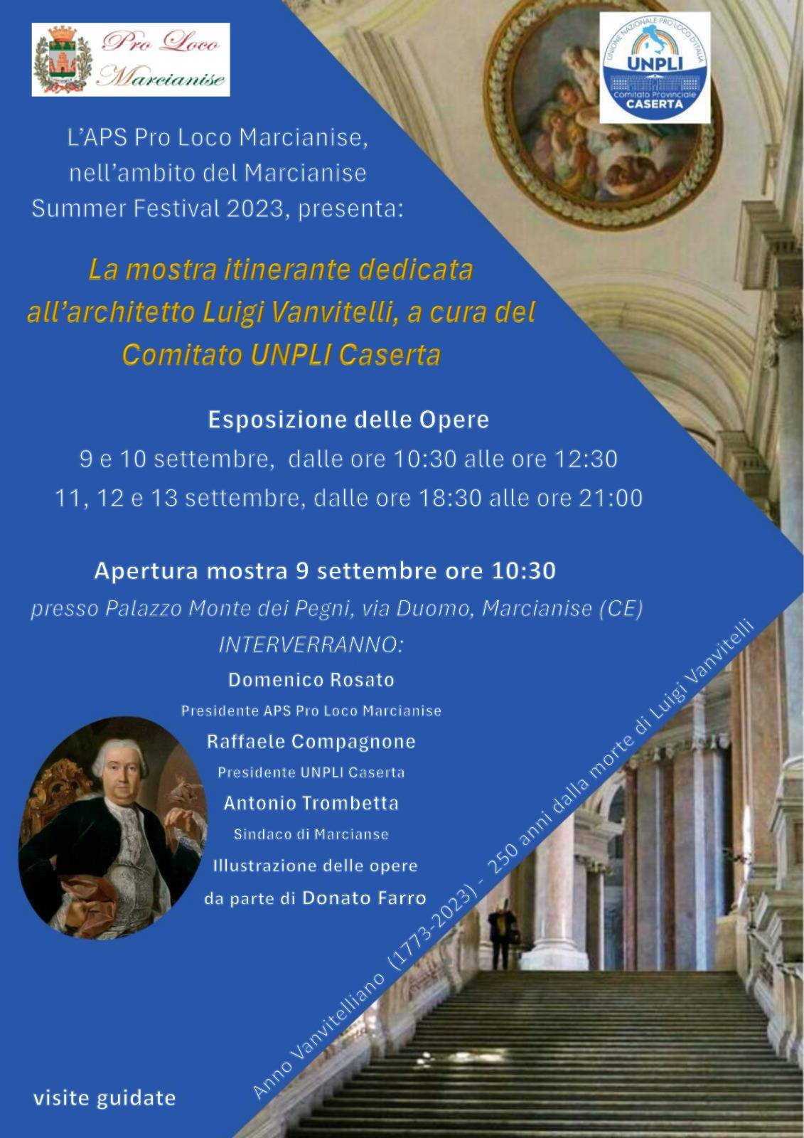 MARCIANISE, SUMMER FESTIVAL: DAL 9 AL 13 SETTEMBRE LA PRO LOCO ESPONE LE OPERE DI VANVITELLI AL MONTE DEI PEGNI