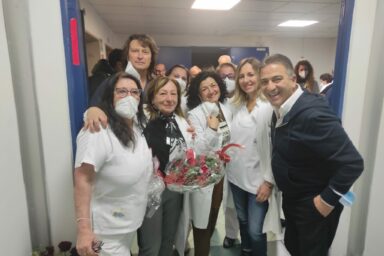 Gran festa, ieri, nel reparto di pediatria per l’ultimo giorno di lavoro di Mariella Tartaglione, la storica caposala del reparto. C’erano tutti, colleghi di reparto, di altri uffici e settori , il direttore sanitario del nosocomio, la dottoressa Laura Leoncini a festeggiare l’importante traguardo. “Mi sono sempre sforzata- ha spiegato Tartaglione, visibilmente emozionata- di sollevare dal trauma del ricovero il bambino , ragione per cui ho voluto la clown terapia nel nostro reparto. Lascio una grande squadra che ha sempre posto il bambino ricoverato al centro di tutto”.