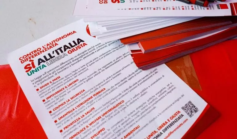 Si è riunito ieri sera, martedì 23 luglio 2024, presso la sede della Cgil di Marcianise (Caserta) in piazza Principe di Napoli, il Comitato Promotore locale del referendum contro l’Autonomia Differenziata, per lanciare sul territorio marcianisano, la campagna referendaria per raccogliere le firme contro la Legge Calderoli. Un Arcobaleno di forze democratiche, tra Sindacati, Partiti e Associazioni, che si sono messe insieme, per contrastare una Legge scellerata, che avrà effetti nefasti in ogni ambito e in ogni settore, ma soprattutto che impatterà negativamente sulla vita delle persone. Una Legge che sferra un duro colpo al Sud Italia e all’unità del Paese. Un Comitato permanente ma aperto a qualsiasi realtà voglia contribuire a sostenere insieme una battaglia di diritti e di dignità. Nei prossimi giorni saranno resi noti tutti i luoghi ed i banchetti dove sarà possibile firmare per il referendum.