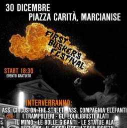 Le esibizioni dell’artista di strada (in inglese busker) sono varie, l’unica costante è quella di donare al pubblico, senza differenze di età, cultura, allegria, momenti di suspense e magia. A causa delle condizioni meteo avverse, previste per la giornata del 29 Dicembre , gli spettacoli saranno riproposti tutti nell’ unica data del 30 Dicembre (Piazza Carità Marcianise ore 18:30 – 24:00)